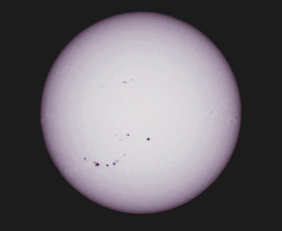 Without yesterday's clouds the Sun can be seen to have literally dozens of sunspots....